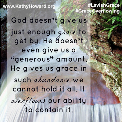 I’m glad to feature Kathy Howard and her new Bible study book Lavish Grace: Poured Out, Poured Through, and Overflowing in a book giveaway. Check below for details of entering. Lavish Grace is a group and individual Bible study with nine weeks of lessons. I guarantee by the time you or your women’s group finishes this study, you will experience God’s grace for you and be empowered to pour grace on others.
